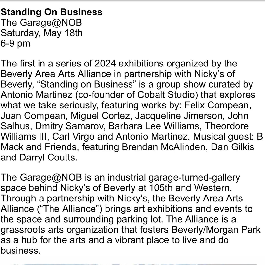 Standing on Business Beverly Arts Alliance group show May 18-June 16 Sharing:Tweet Click to share on Reddit (Opens in new window) Reddit Share on Tumblr Click to share on WhatsApp (Opens in new window) WhatsApp